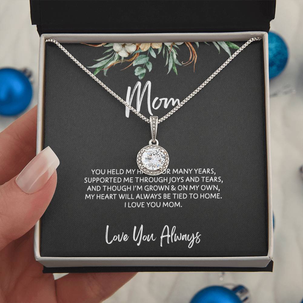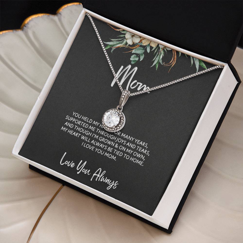 To Mom - Mother's Day Necklace - “My Heart Will Always Be Tied to Home” - Eternal Hope Necklace Gift Set - Design Dark 6.2