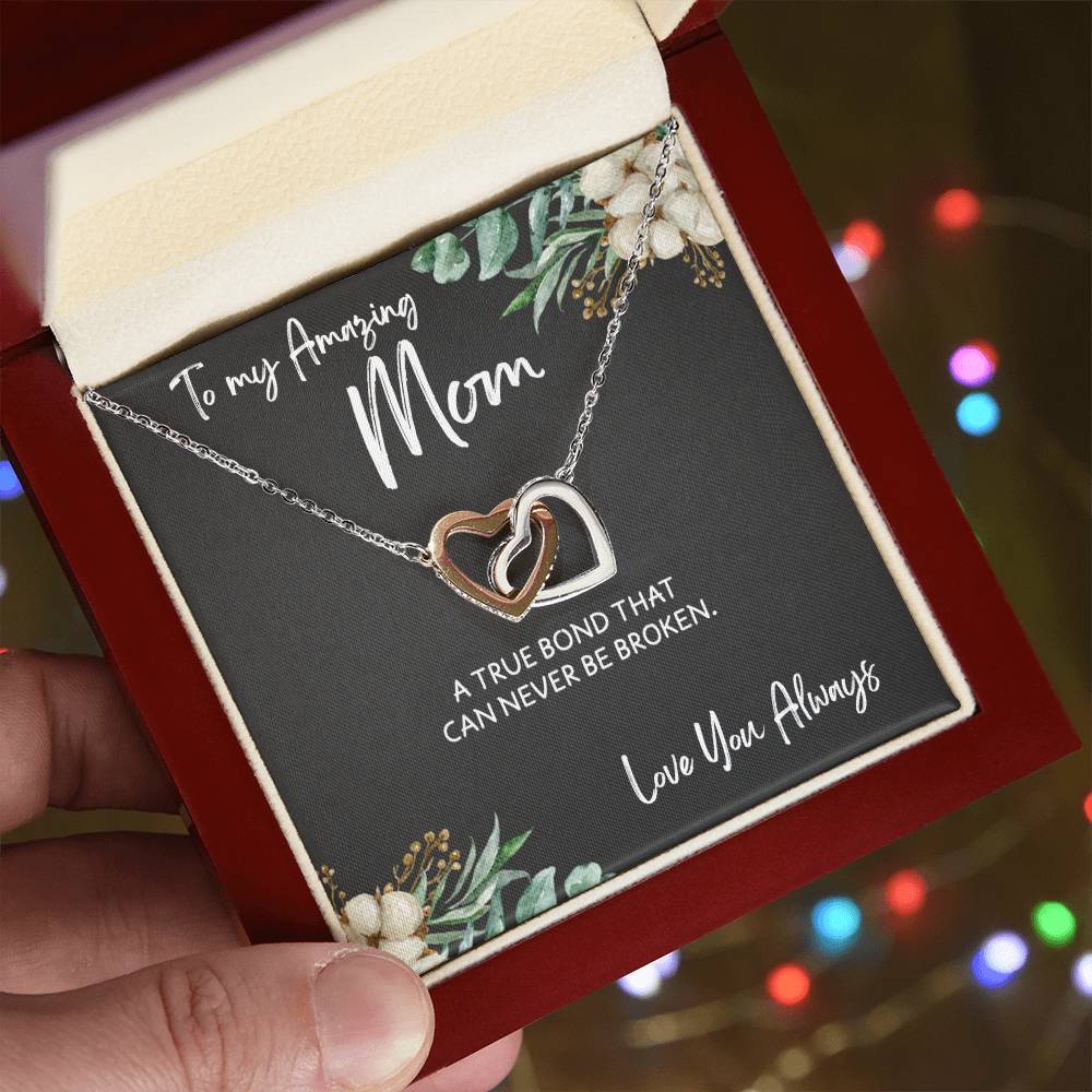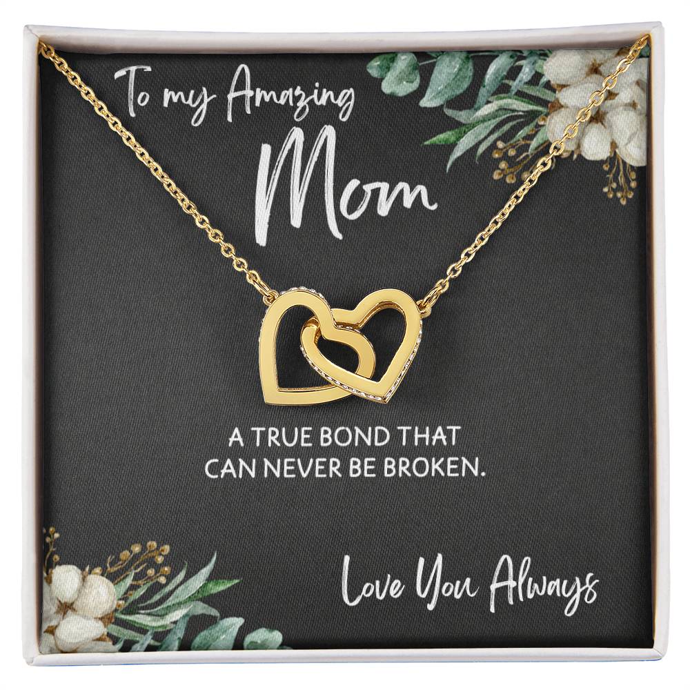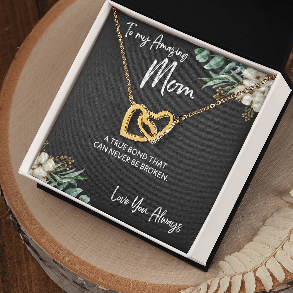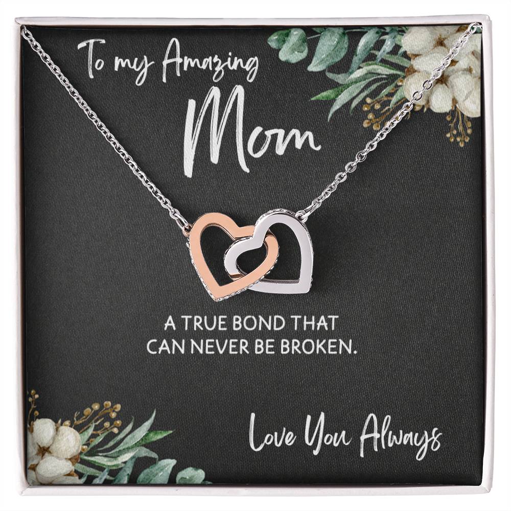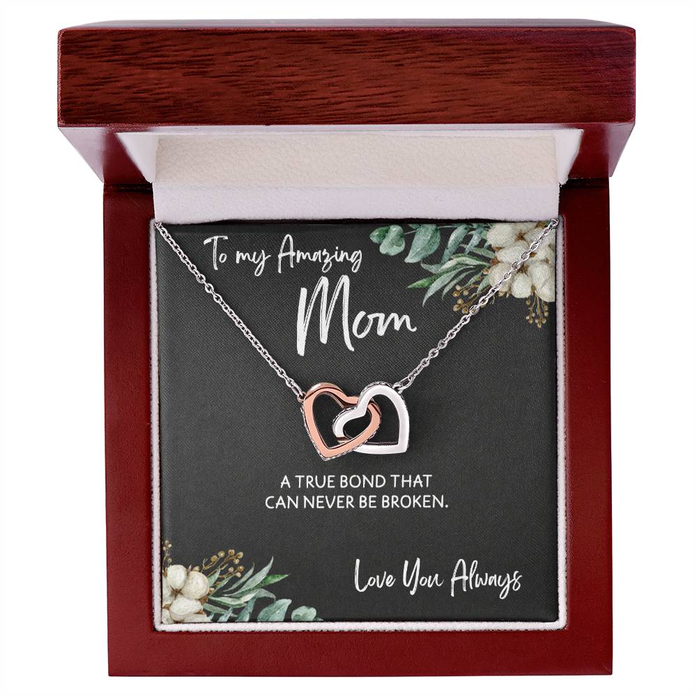 To Mom from Daughter - Mother's Day Necklace - “A True Bond That Can Never Be Broken” - Interlocking Hearts Necklace Gift Set - Design Dark 1.1
