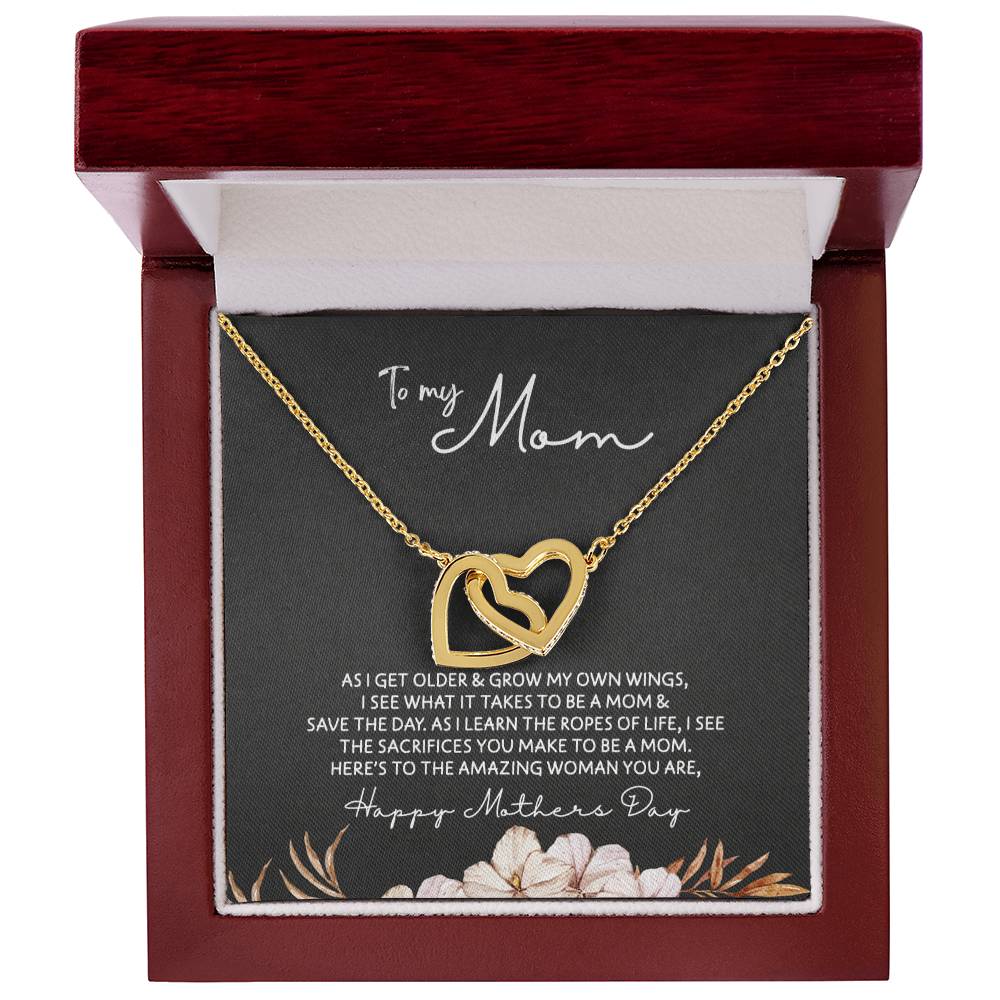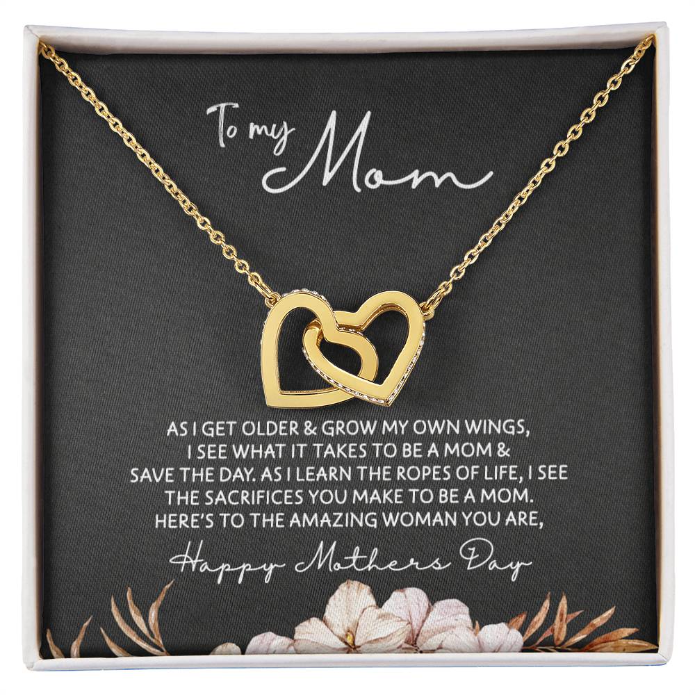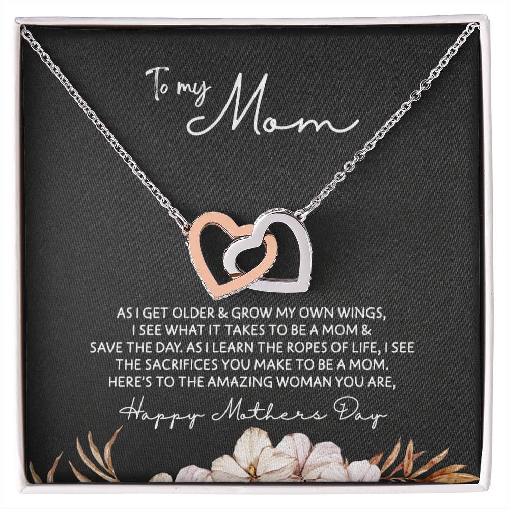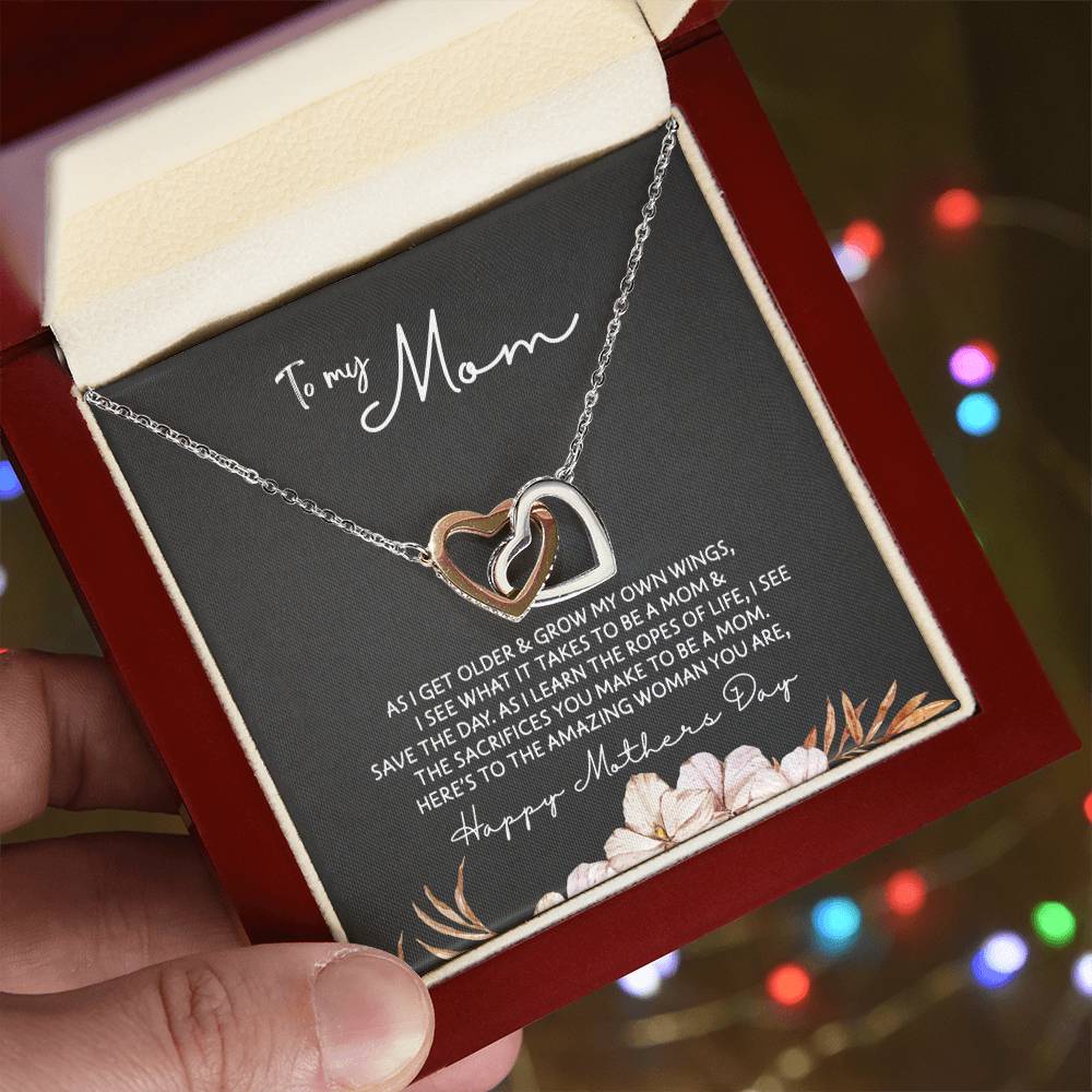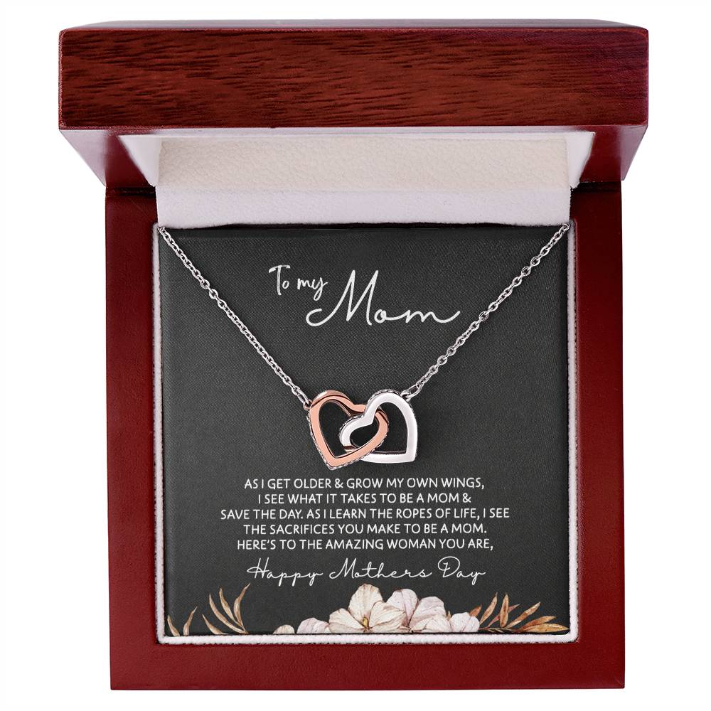To Mom - Mother's Day Necklace - "Here's to an Amazing Woman" - Interlocking Hearts Necklace Gift Set - Design Dark 3.3
