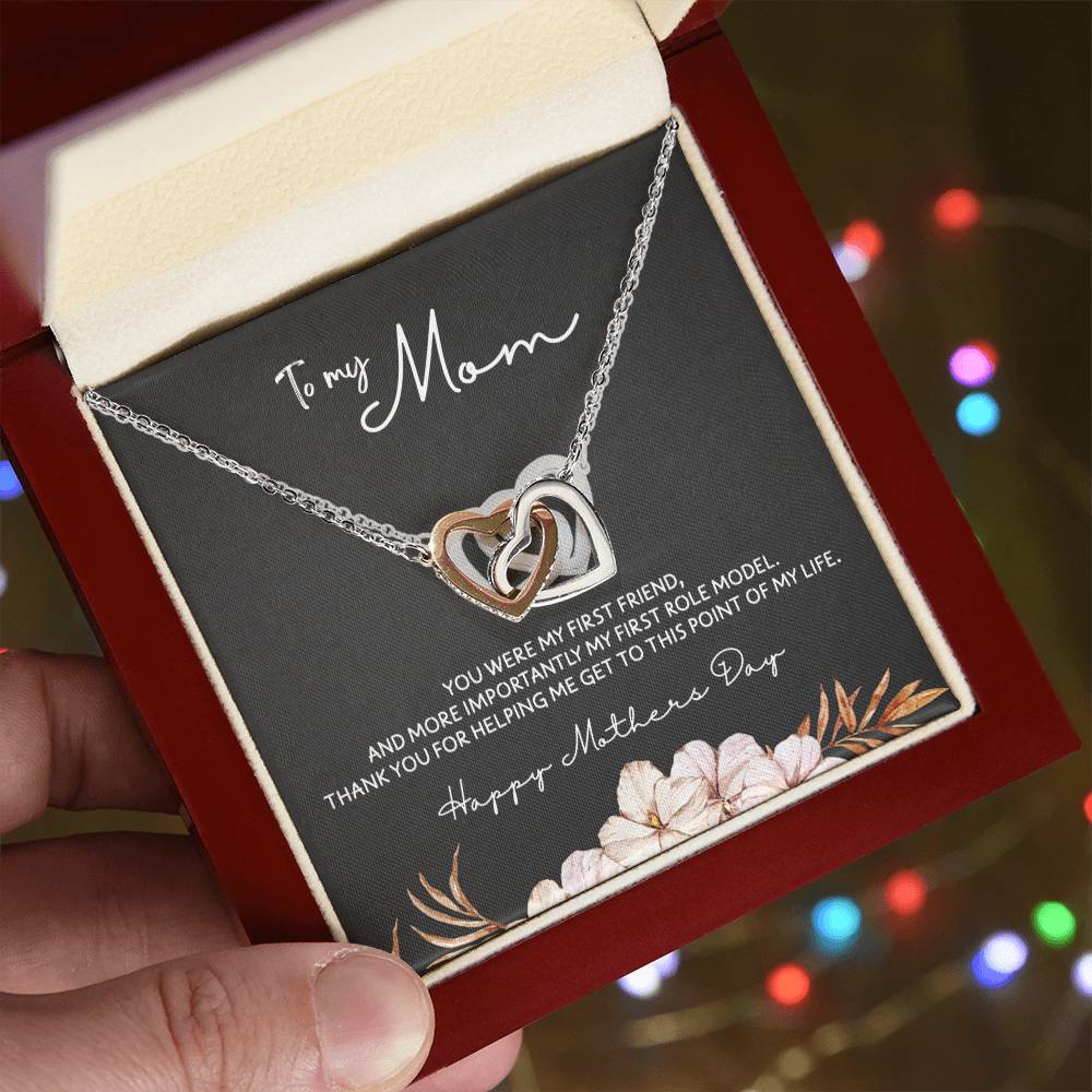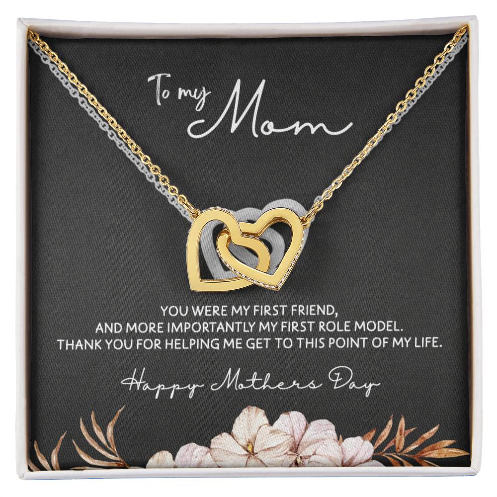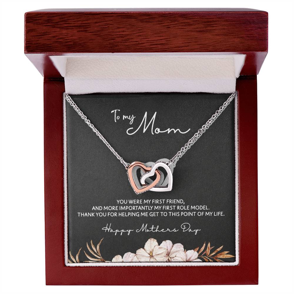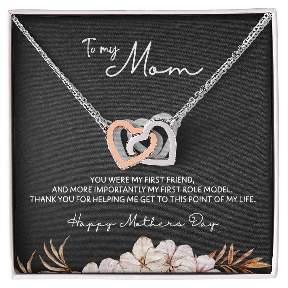 To Mom - Mother's Day Necklace - "You Were My First Friend" - Interlocking Hearts Necklace Gift Set - Design Dark 5.3