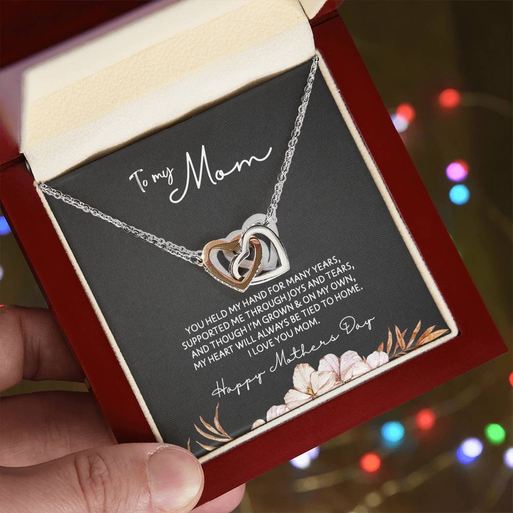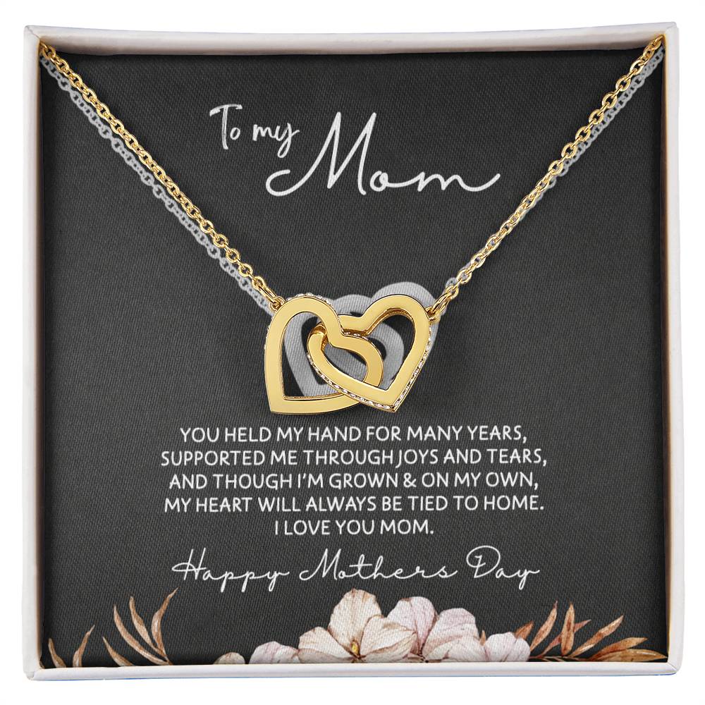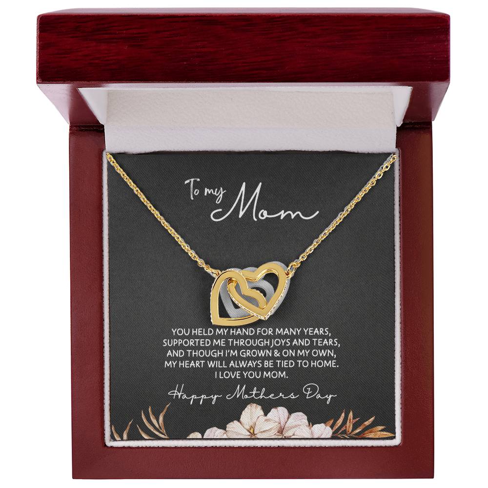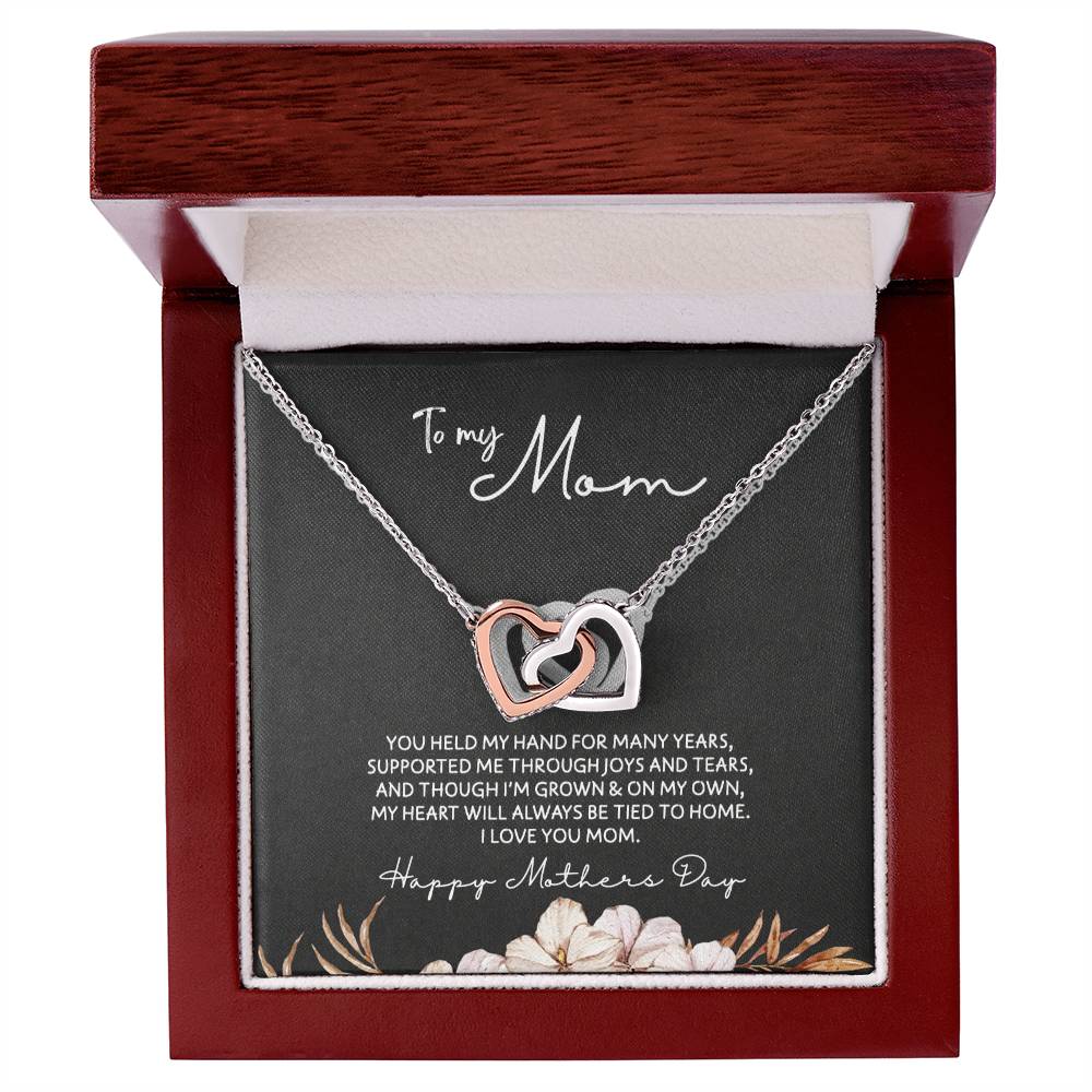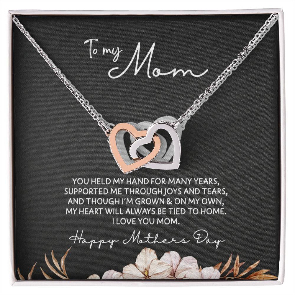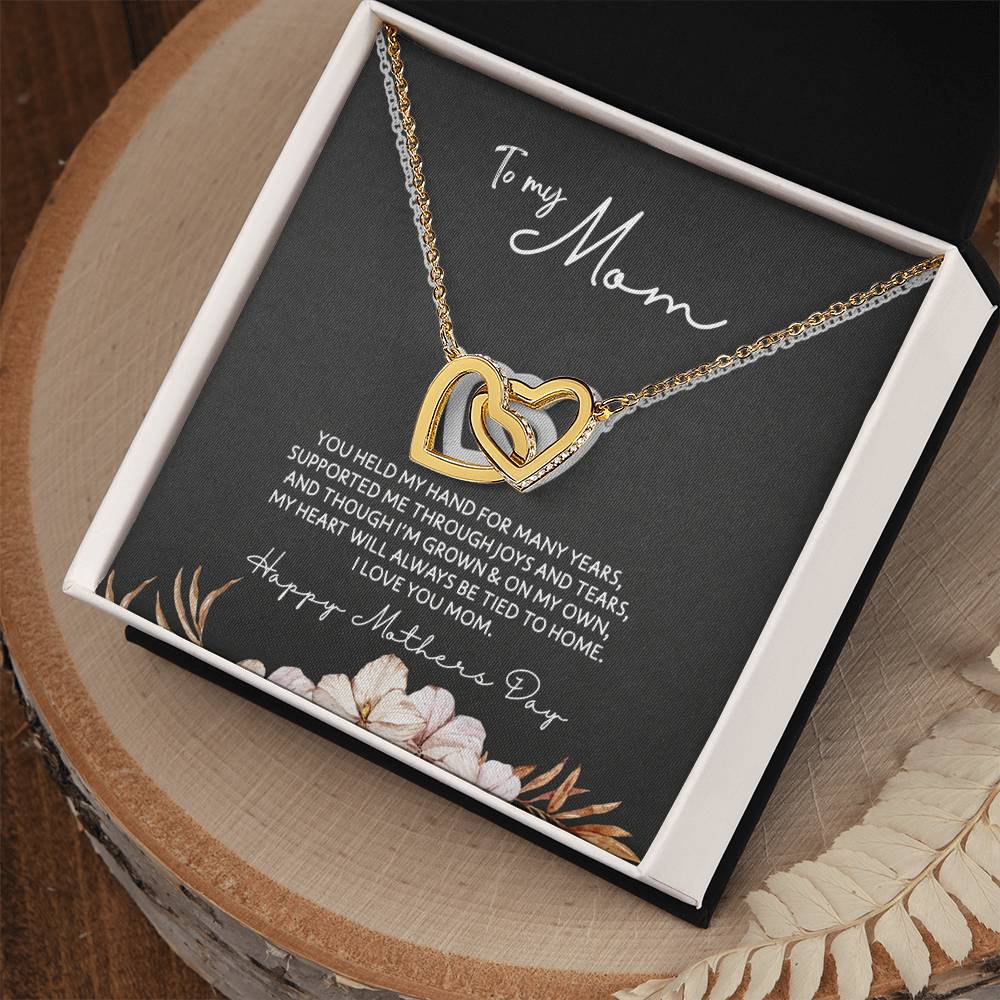 To Mom - Mother's Day Necklace - “My Heart Will Always Be Tied to Home” - Interlocking Hearts Necklace Gift Set - Design Dark 6.3