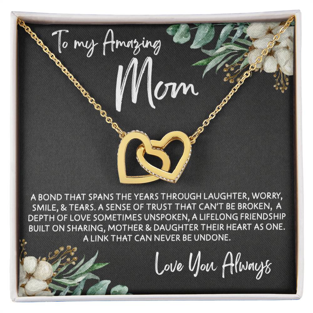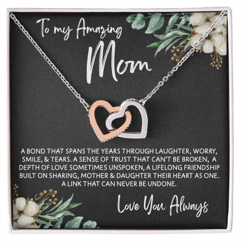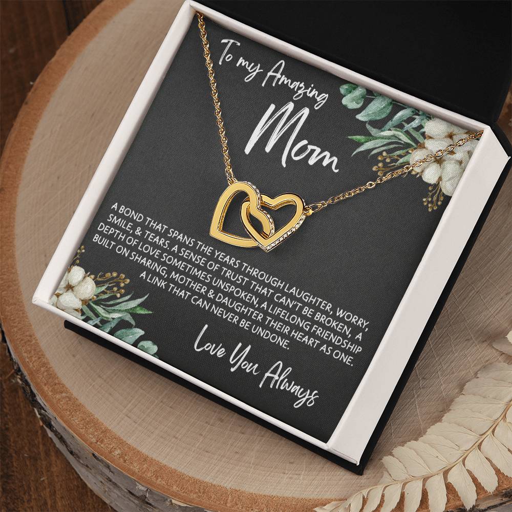 To Mom from Daughter - Mother's Day Necklace - “Link that Can Never Be Undone” - Interlocking Hearts Necklace Gift Set - Design Dark 10.1