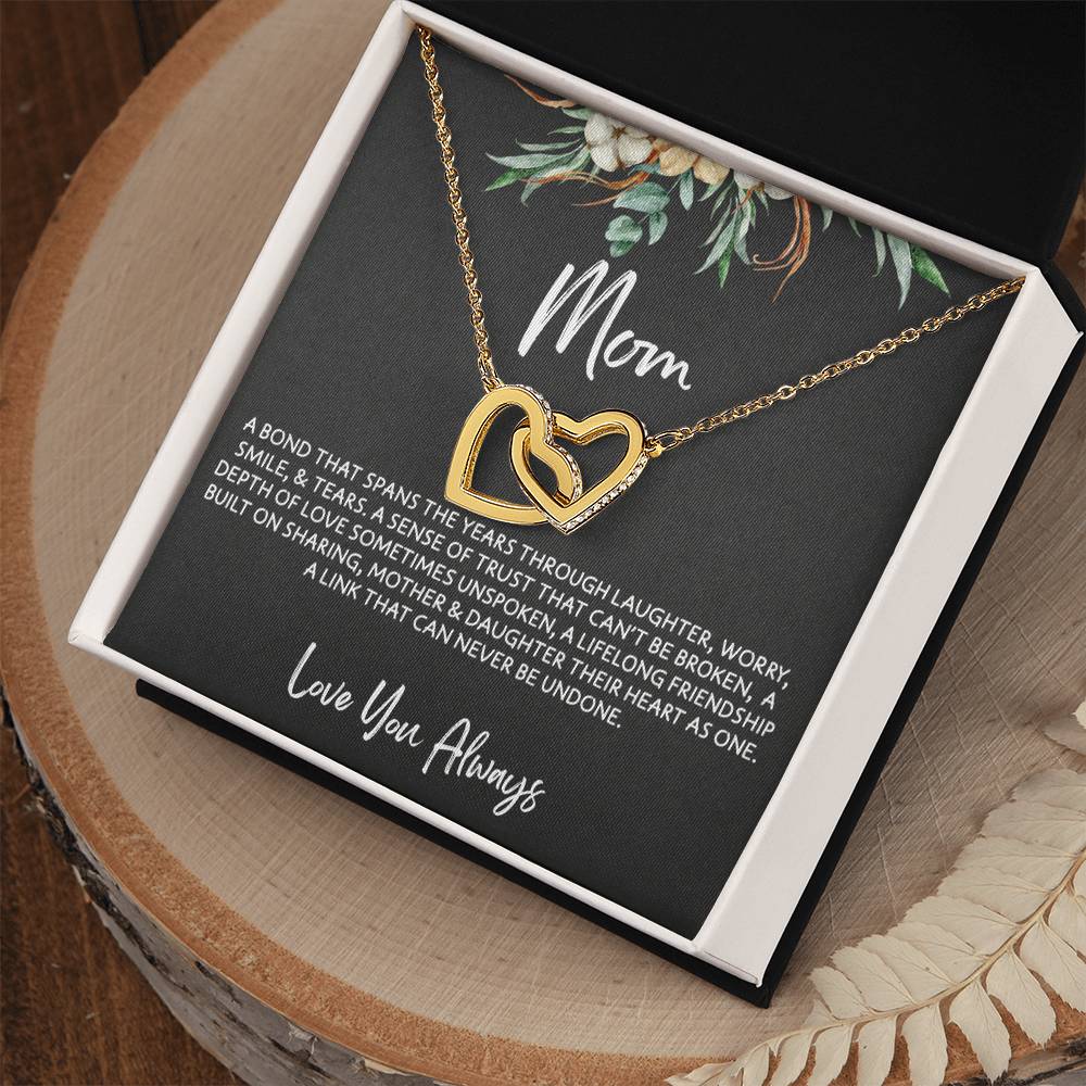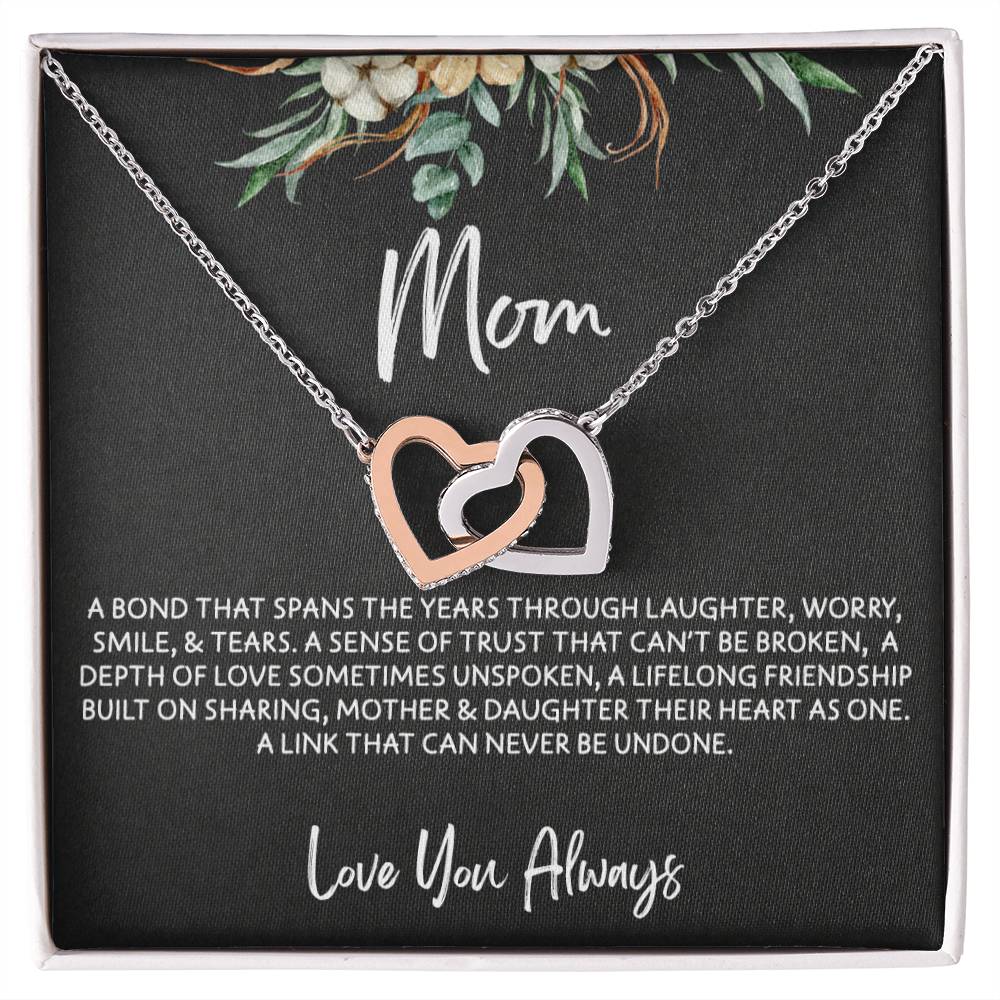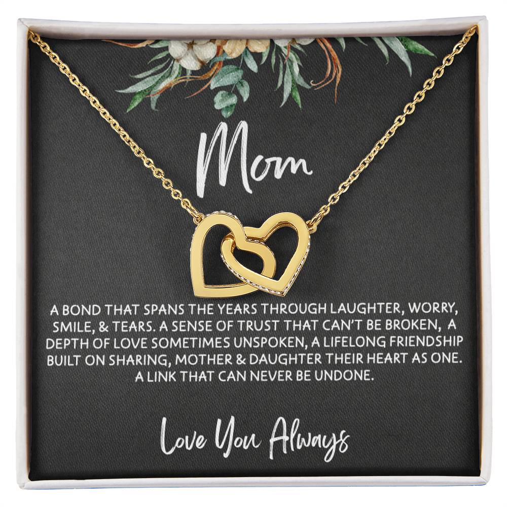 To Mom from Daughter - Mother's Day Necklace - “Link that Can Never Be Undone” - Interlocking Hearts Necklace Gift Set - Design Dark 10.2