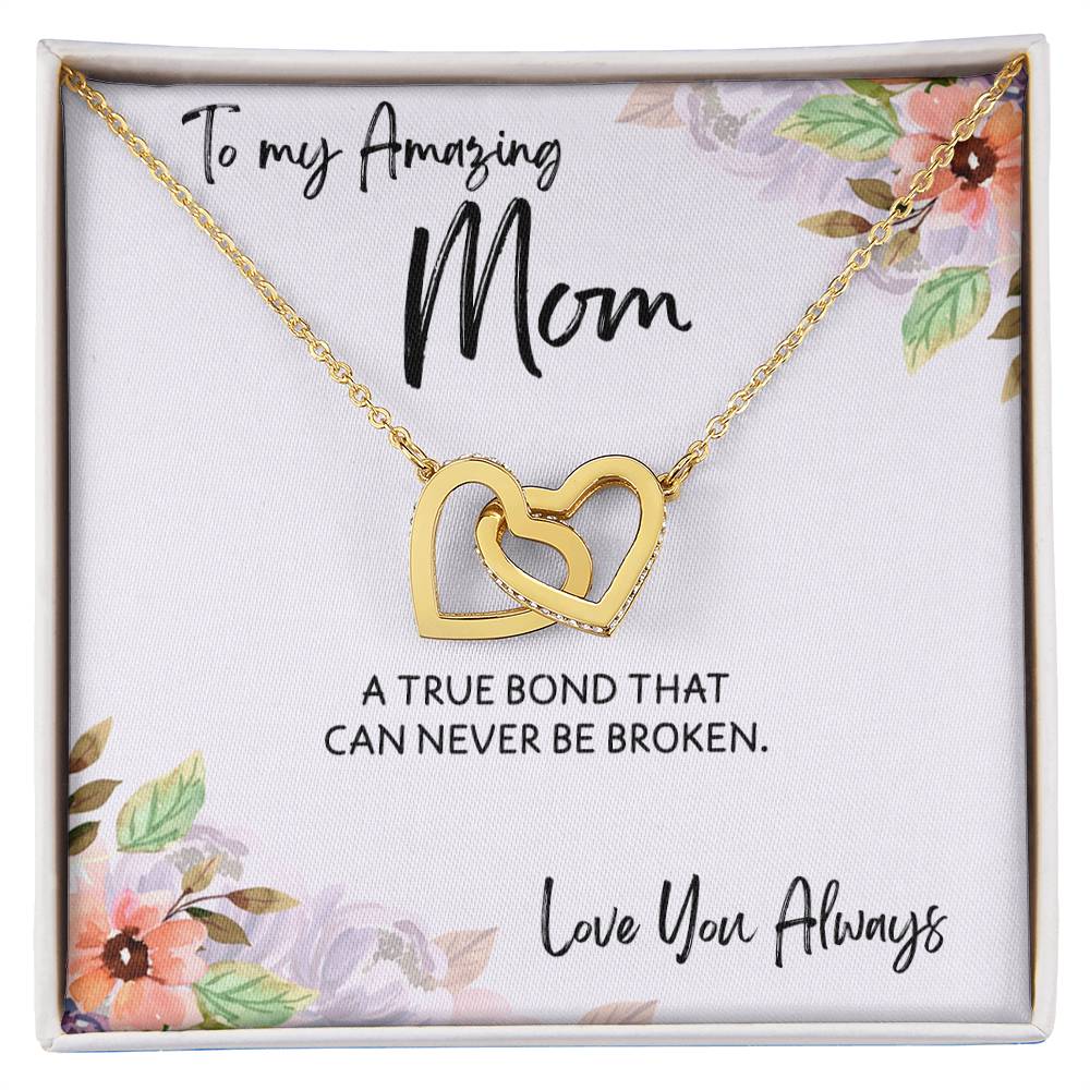 To Mom from Daughter - Mother's Day Necklace - “A True Bond That Can Never Be Broken” - Interlocking Hearts Necklace Gift Set - Design Light 1.1