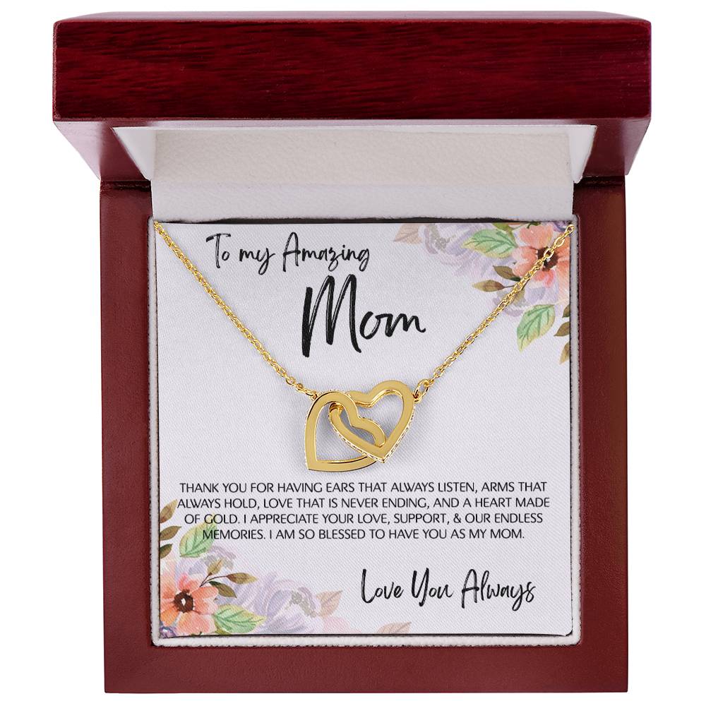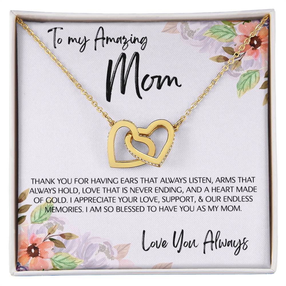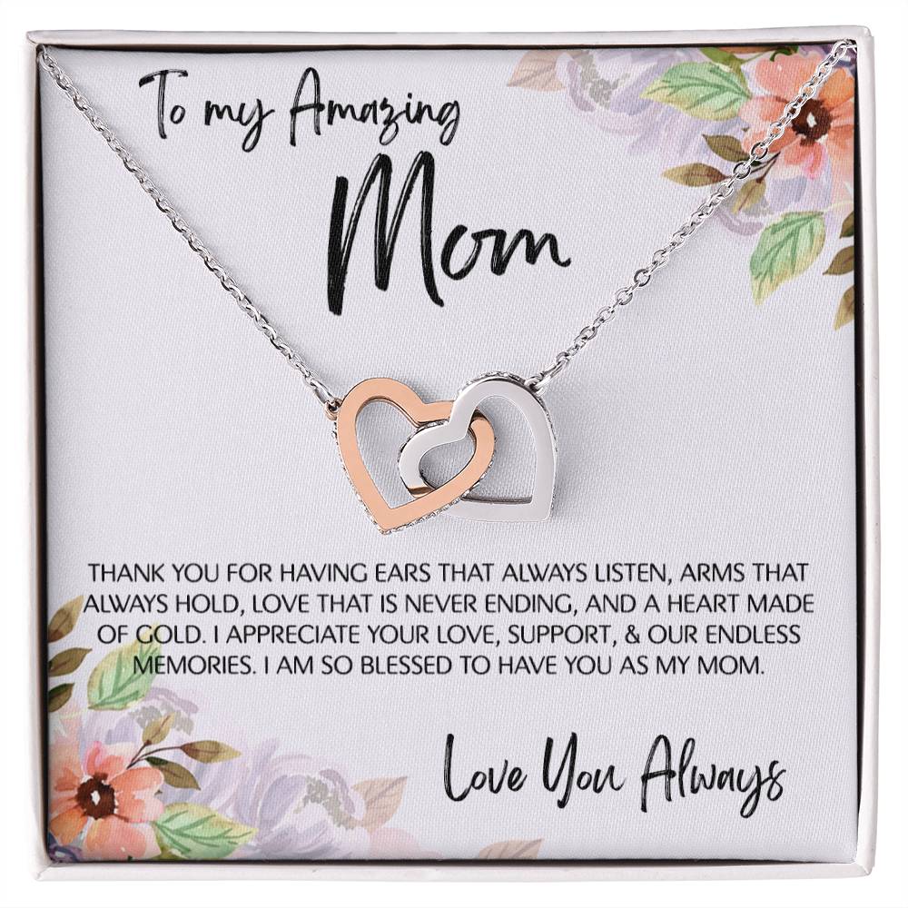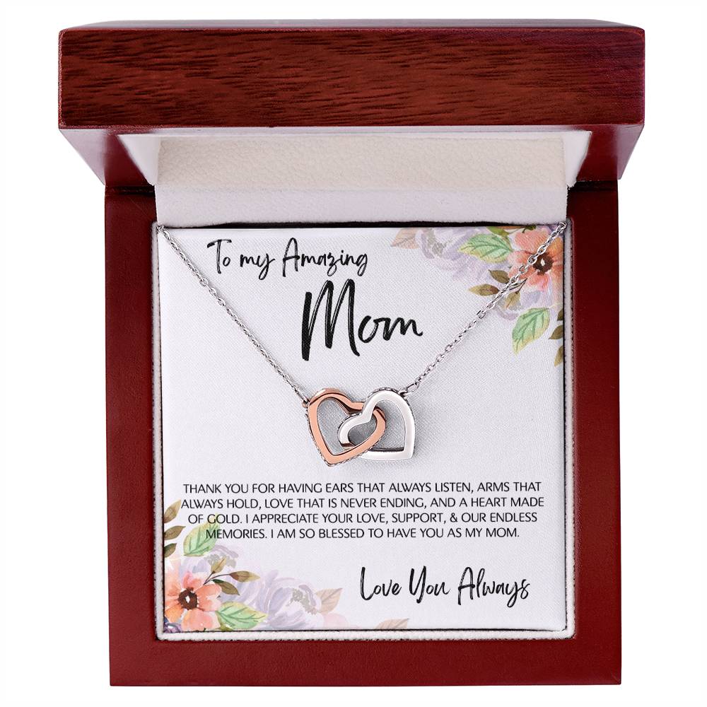 To Mom - Mother's Day Necklace - “I am So Bless to Have you as My Mom” - Interlocking Hearts Necklace Gift Set - Design Light 10.1