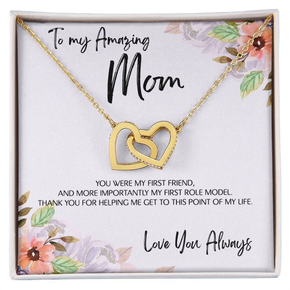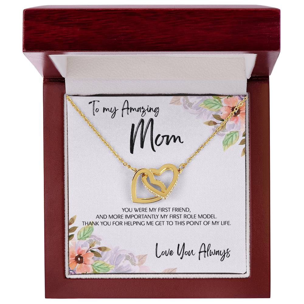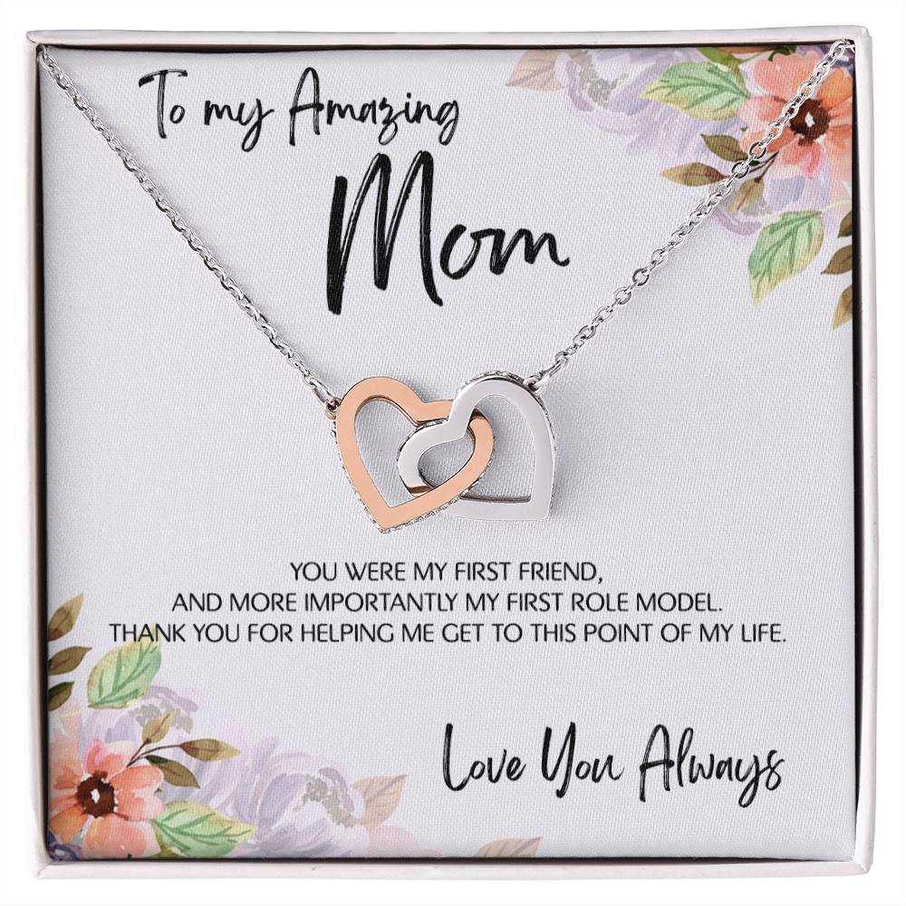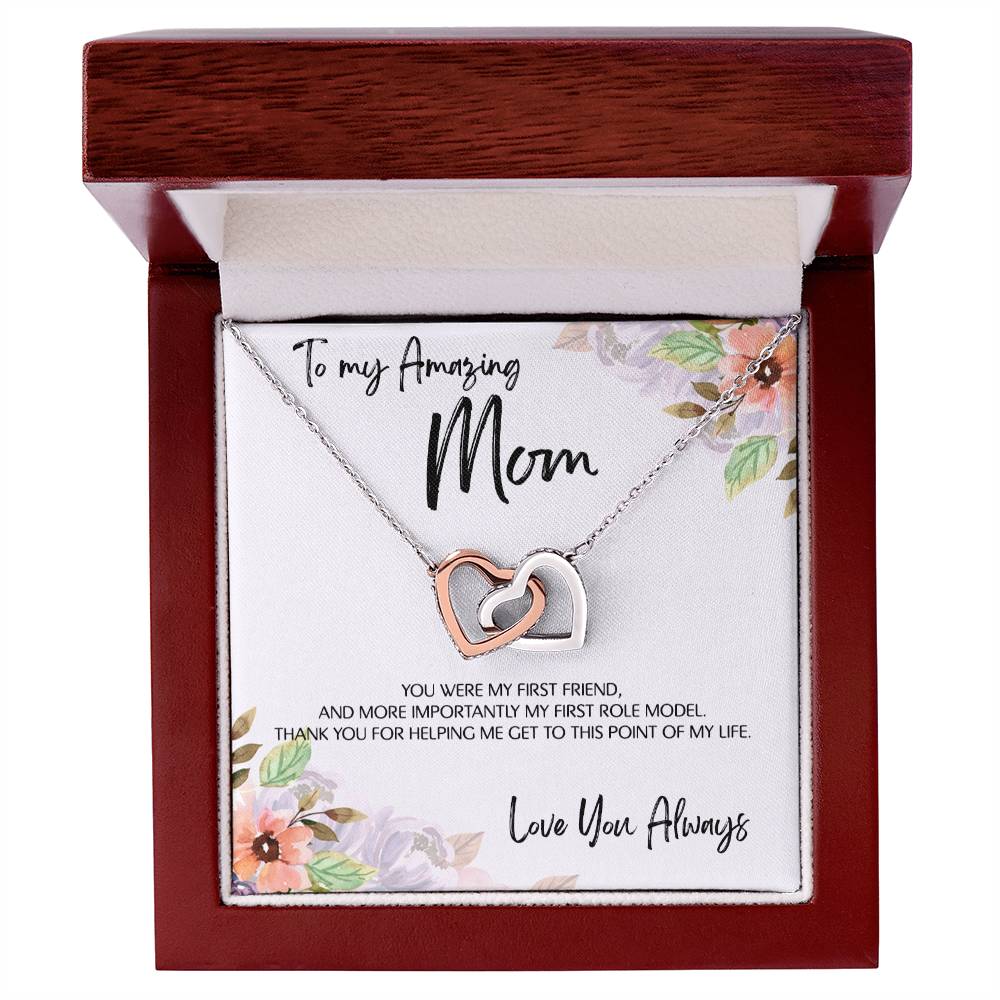 To Mom - Mother's Day Necklace - "You Were My First Friend" - Interlocking Hearts Necklace Gift Set - Design Light 5.1