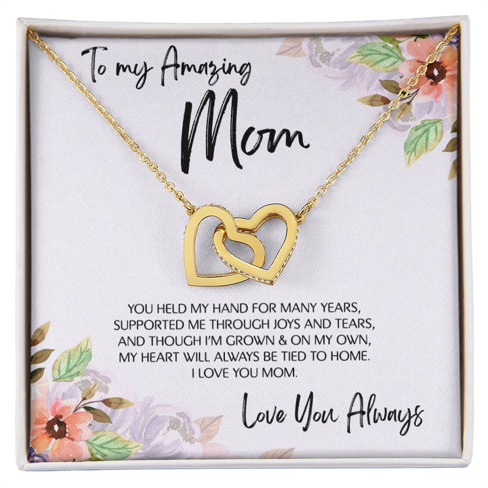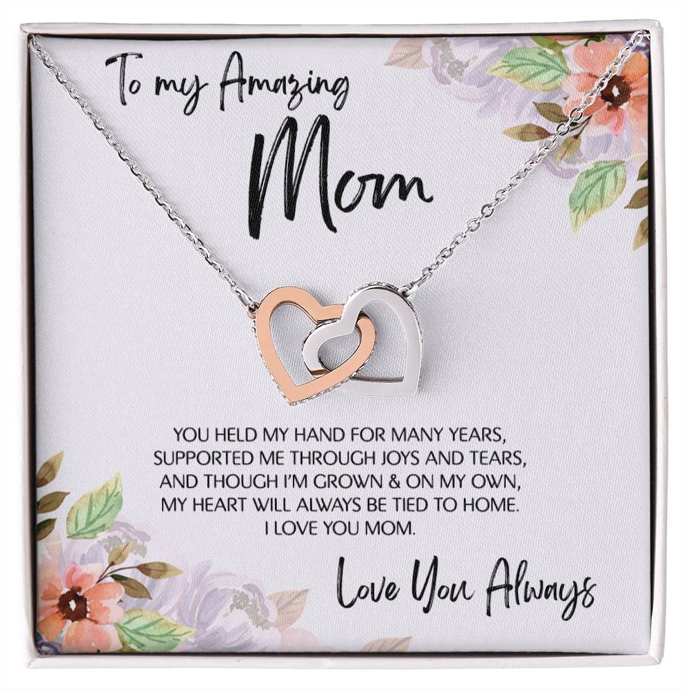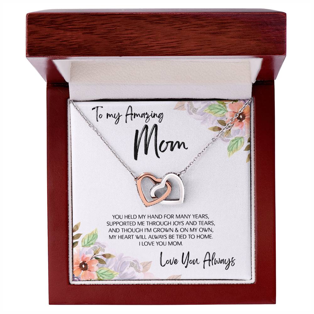 To Mom - Mother's Day Necklace - “My Heart Will Always Be Tied to Home” - Interlocking Hearts Necklace Gift Set - Design Light 6.
