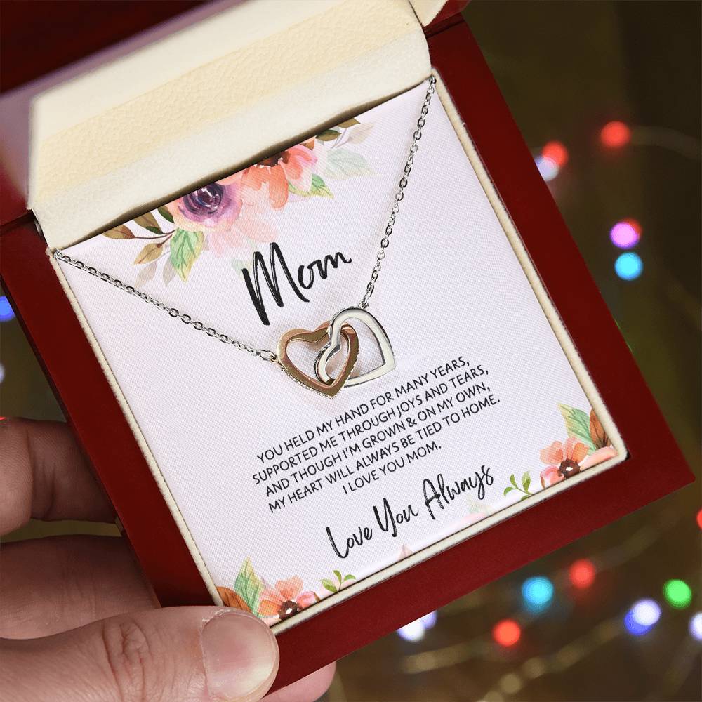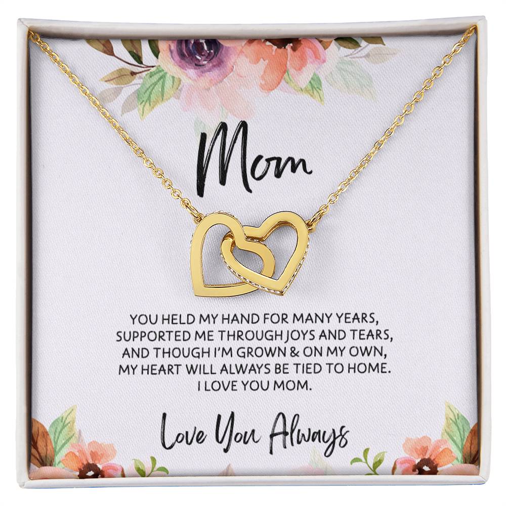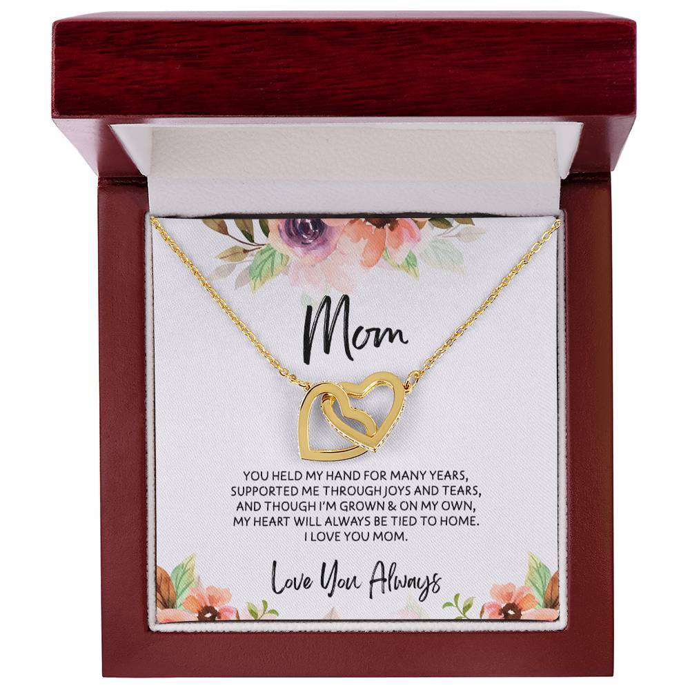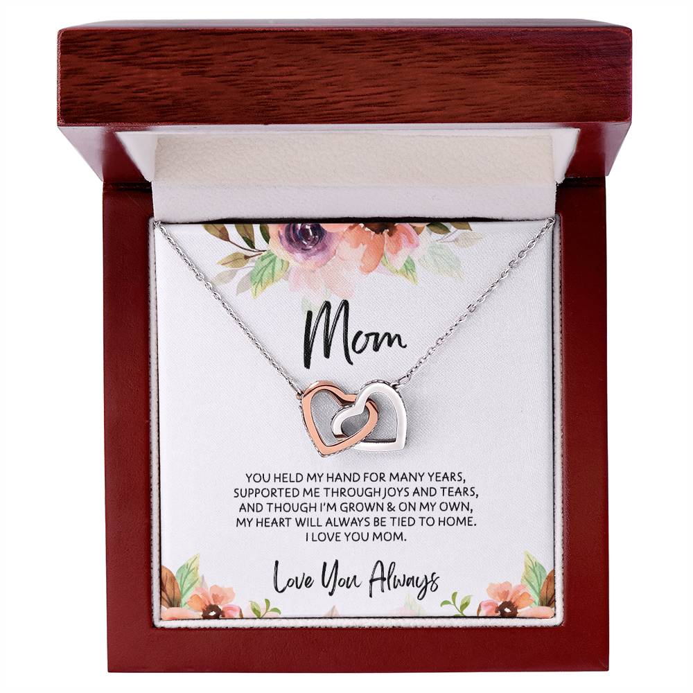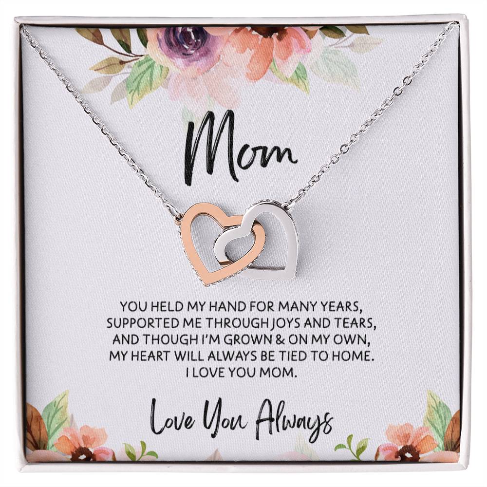 To Mom - Mother's Day Necklace - “My Heart Will Always Be Tied to Home” - Interlocking Hearts Necklace Gift Set - Design Light 6.2