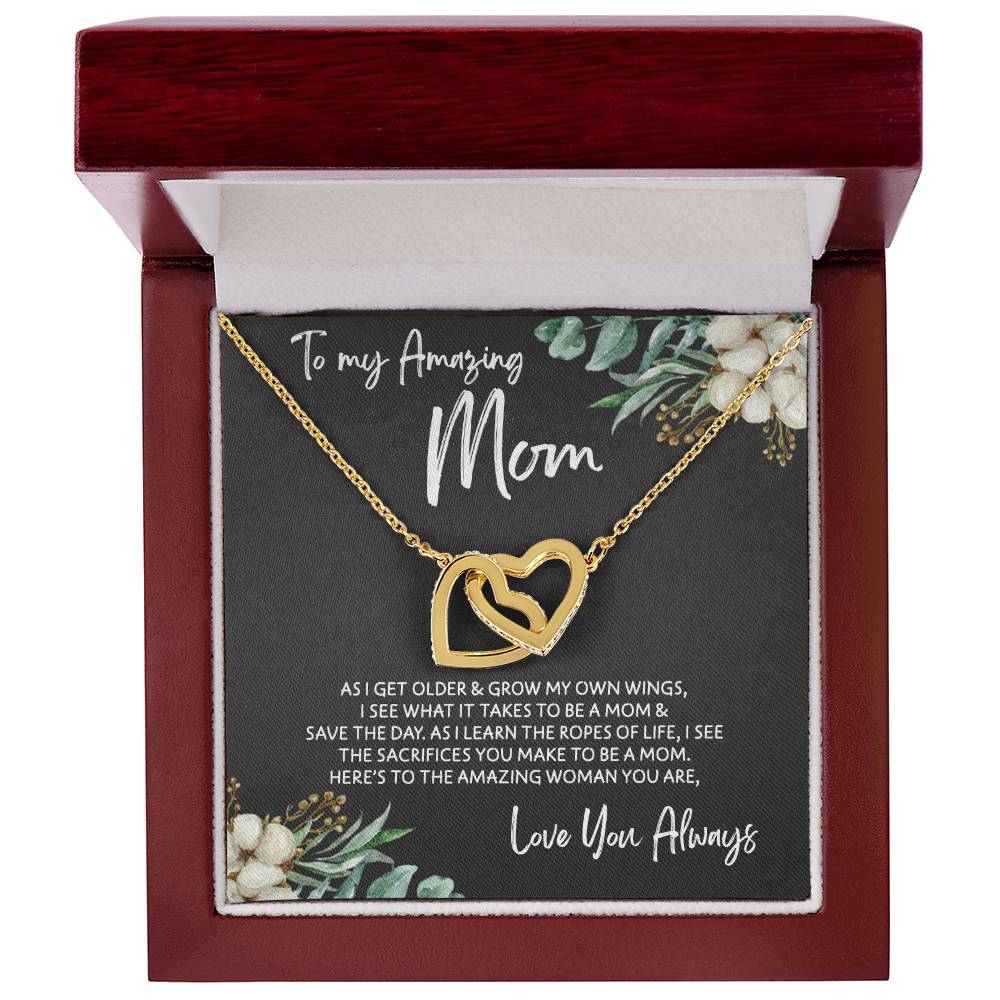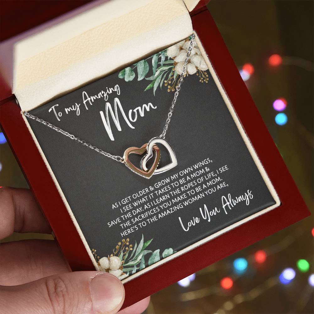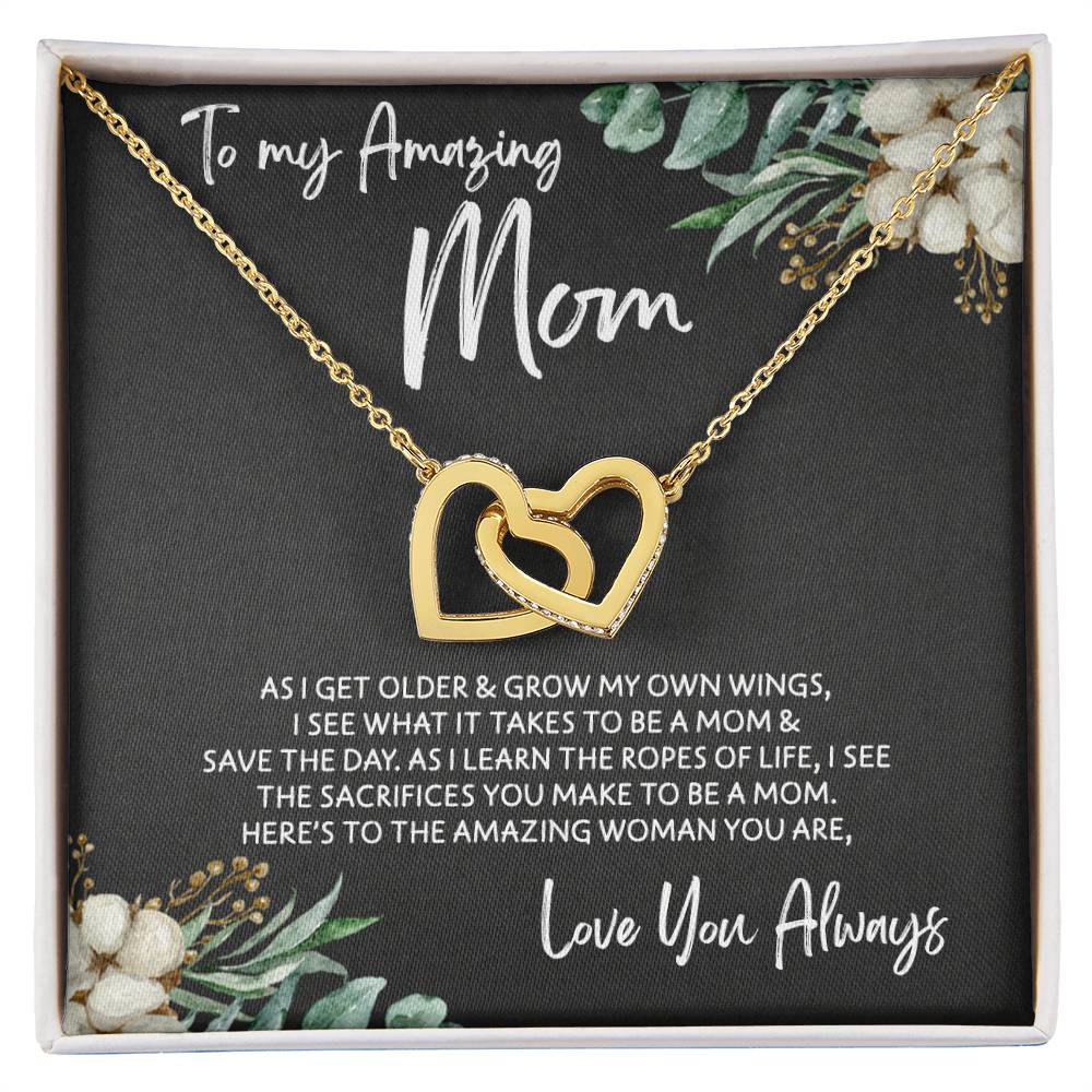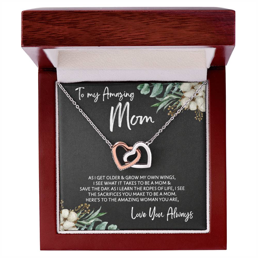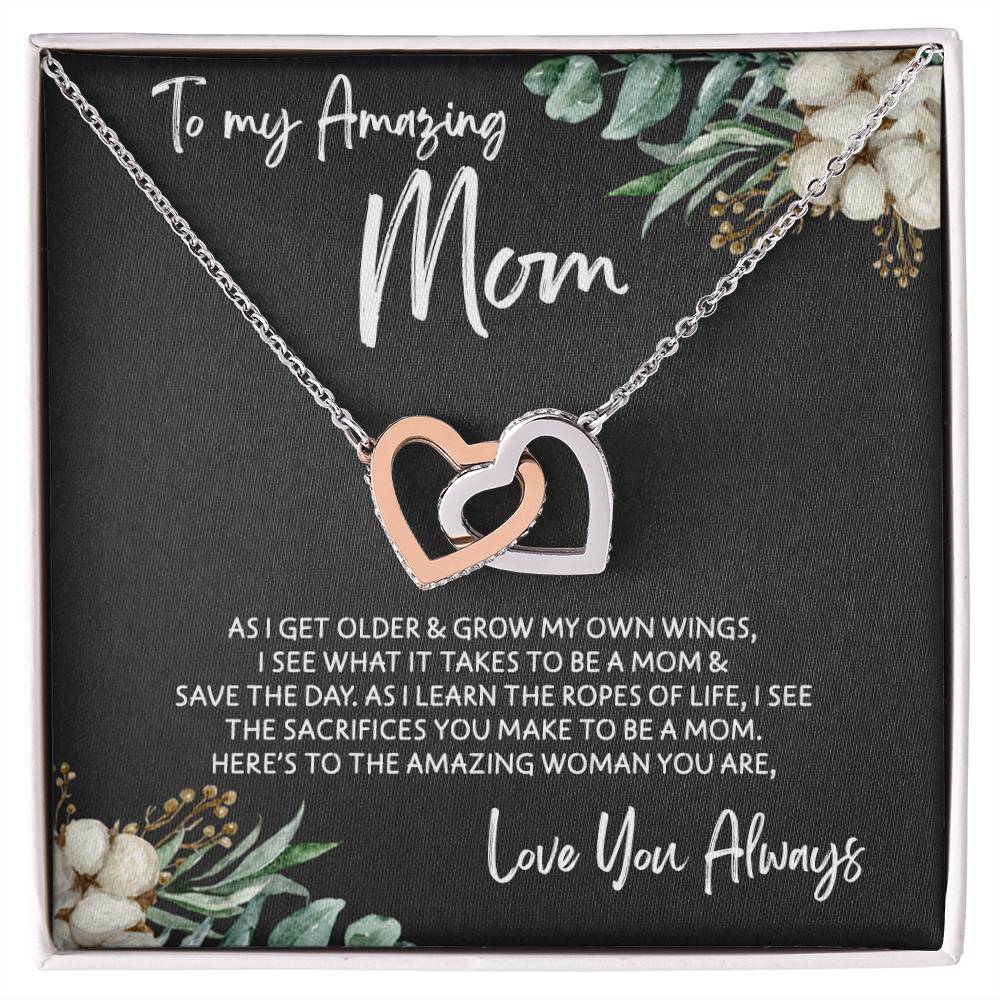 To Mom - Mother's Day Necklace - "Here's to an Amazing Woman" - Interlocking Hearts Necklace Gift Set - Design Dark 3.1